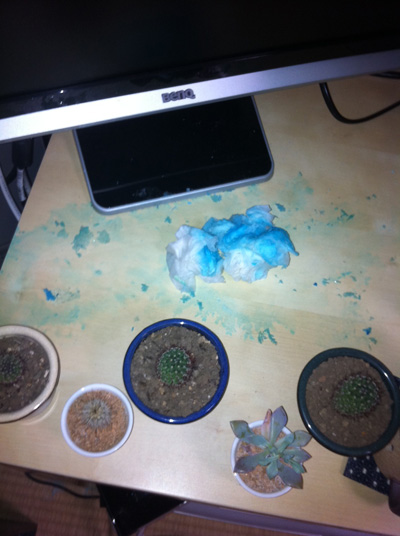 | 2011 夏休みタンブラー自由研究 (2011/8) 「本格派!タンブラーでクリスタルを錬金しよう!」 ![]() 今までは自由研究のような、そうでないようなサムシングだったが今度は違う!! 正真正銘の自由研究に違いない!! ところで、「ファイナルファンタジー」といえば、クリスタルである。 ![]() このような物があるのをご存じだろうか。 ![]() 「マジカル・クリスタルキット」!!! なんとこれは自宅にいながらにして、クリスタルを合成することができるという代物!! 箱の側面を見ると・・・ ![]() ![]() なぜ左右別の言葉にしたのかわからないが、これは怪しい!! 確かめてみるしかないぜ!!! ---------------------------------------------- ■実験に必要なもの ・マジカルクリスタルキット(1,000円くらい) ・スチール空缶(パイナップル缶とかトマト缶がよい) ・空き紙パック ・湯せん用の鍋 ・割り箸等の混ぜる棒 ・ファイナルファンタジー14 特製タンブラー(非売品) ---------------------------------------------- ■実験の方法 ※「クリスタル」と言ってもFFで出てくるような巨大単結晶風味のものを短期間で 作るのは難しいため、マジカルクリスタルキットを使用しました。 本格的にやりたい方は「ミョウバンの結晶 密度拡散法」で検索! (1)マジカルクリスタルキットを開封する ![]() マジカルクリスタルキットを開封すると、取説の他に、白い粉が入った大きな袋と 青色の塊が入った小さな袋が入っている。 白い袋はミョウバンの粉で、青い方は結晶の着色用のものらしい。 (2)白い粉を熱湯に入れる ![]() 見るからに怪しいが、空き缶に熱湯を注ぎ、白い粉を入れる。 (3)空き缶を湯せんして白い粉を完全に溶かす ![]() 空き缶を湯せんして中の白い粉を完全に溶かす。真夏のクソ暑いときにやったので、 もうもうと上がる蒸気の中、ミョウバンの臭いが立ち込める台所は地獄絵図である。 おまけに缶はものすごく熱くなるので十分注意すること。 これでミョウバンの水溶液を作るのである。 〜 ここで一息 〜 ミョウバンはお湯にものすごく溶ける。 ![]() *湯の温度が100度近いなら、水と同量以上のミョウバンが溶ける。 しかし、湯の温度が下がっていくと、ミョウバンが溶けきれずに水中に結晶として析出してくる。 さらに水分が蒸発していくと、溶けることのできる量がさらに減少するため、結晶がさらに大きくなってゆく。 この現象を利用してミョウバンクリスタルを作ろうというのがマジカルクリスタルキットなのである。 (ミョウバンの種結晶から作った人もいると思うが、大きくきれいな結晶にするのはなかなか手間がかかる) (4)溶液をタンブラーと紙パックに流し込む ![]() できあがった溶液をタンブラーと紙パックの両方に流し込む。 本当は紙パックに全部流すのが正しいやり方だが、ここではFF14特製タンブラーも使用する。 指定外の物品(タンブラー)を使っているので、どうなるかが全く読めない・・・!! (5)色つきの塊を軽く溶かす ![]() 色つきの塊を中に投入して軽く溶かす。きれいな青色の溶液になった。 マジカルクリスタルキットの種類によっては緑、赤、白もあるらしい。 ![]() 強力な着色料なので、手に付かないように注意する。 (水で流したくらいでは落ちない) (6)振動のない場所で放置する ![]() ※水溶液と子ミネソターズのみなさん あとはただ放置!!振動がない場所で放置するのみ!!!実に楽だぜ!!! ■実験の結果 --------------------- そして3日後・・・ ---------------------- ![]() 紙パックには壁面に青い結晶がべったりと付いている。これは予定通り。 そしてFF14特製タンブラーの方は・・・・・・何かの進化を遂げている!? 取説外の使用法なのでサッパリ状況がわからん!! 取説には「1週間くらい放置すること」とあったので、このまま放置してみよう。 --------------------- そして1週間・・・ ---------------------- ![]() 終了!!! ![]() あれ・・・何か予想外の異形の生物・・・?が・・・・・・とりあえずタンブラーの方は無視しよう・・・。 ![]() 紙パックの方(取説通り)は何かそれっぽい・・・ものができてるような・・・? とりあえず水を出してみよう。 ![]() お・・・これは・・・?! ![]() カッターで周りを切って結晶をそっと取り出す。壊れやすいので扱いには注意を。 これが完成品だ!!! ![]() 液量が半分だった割にはかなり綺麗な結晶が!やるじゃないかマジカルクリスタルキット!!! 一方その頃タンブラーの方は・・・・・・ ![]() あれ・・・?結晶はできているものの、大きさが小さい・・・? 無数の棘が底面に刺さっているように見える。 ![]() 側面に謎のサンゴ礁が!!! これは取説にはなかった謎の状態!!怖い!! 失敗か・・・・・・?もうだめか・・・・・・? しかし、男たちは諦めなかった・・・・・・!! ![]() 余った溶液をブッこんじゃえばデカいのができるんじゃね!? というわけで、溶液を約2倍にして実験再開!! 数日後には巨大結晶が・・・!!! しかし、これが新たな悲劇を生むことに!! 「なぜ外側に結晶ができていたのか?」 その意味を考えていなかったために!!!