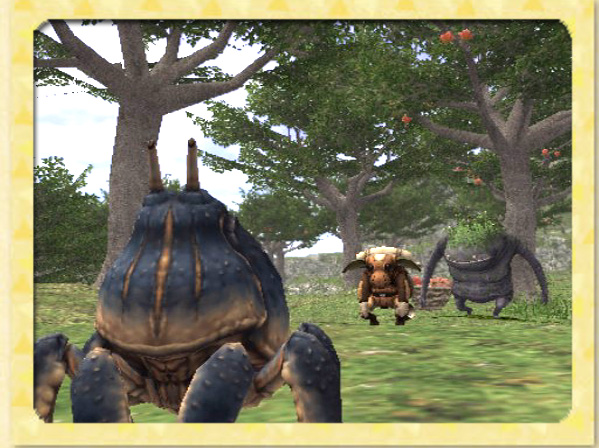 [English原文]D'oh! I thought I'd lost this crustacean. "Hi, Thickshell. Where's Mr. Treant?" Thickshell: "I don't know. We were just minding our own business by the campfire when some crazy Galka with a hatchet started chasing him. I was too busy hiding behind that bush over there to see what happened next." Ah, if that Galka only knew how delicious crab meat is...