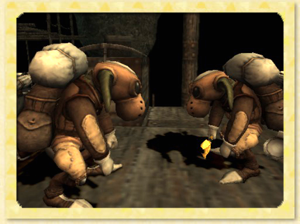 [English原文]Whoa, that looks pretty heavy. I wonder what's inside... Moblina: "That box weighs over five thousand ponzes. But with our Goblin technology, it can be lifted with ease." "Goblins made that? Wow, we must be pretty smart. I don't remember seeing any of those box-moving machines in the Temple of Uggalepih..." Tonberry King: "..." Moblina: "Tee hee hee. Fab, you're so cute. Almost as cute as me." "Heh heh. Tell me more."